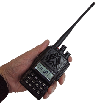 Время работы в режиме высокой мощности передатчика, с включённым шумоподавлением, в цикле 5/5/90 (передача/приём/дежурный режим), ч