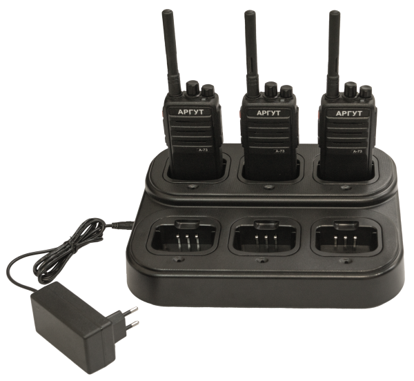 Шестипозиционные зарядные устройства выпускаются для профессионального применения радиостанций. Компания Аргут выпускает шестипозиционные зарядные устройства для моделей АргутА-73. Шестипозиционные зарядные устройства состоят из двух модулей: шестиместной базы на и адаптера питания.